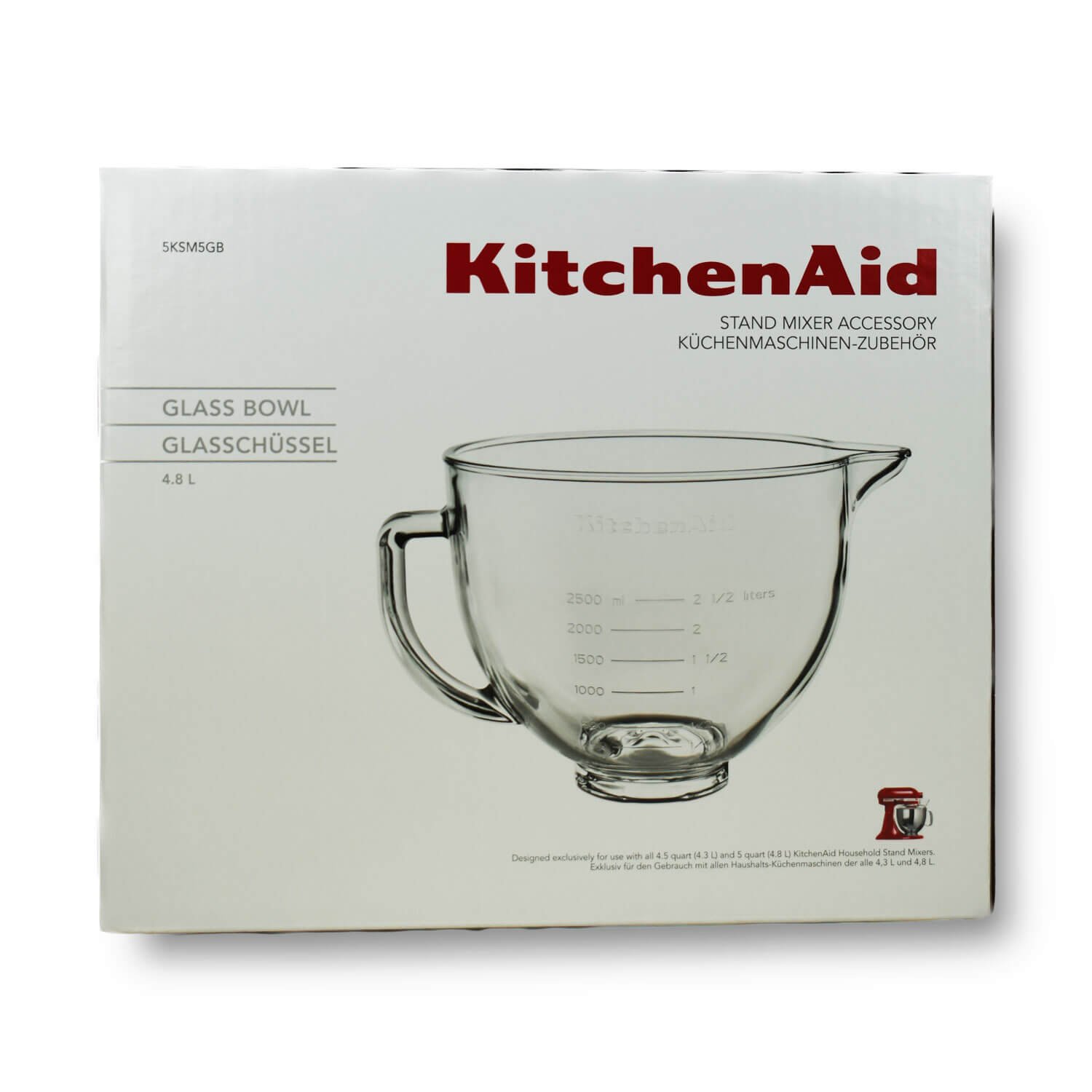 KitchenAid Glasschüssel 4,83 Liter mit Silikondeckel für Artisan, Classic und UltraPower (5 Qt.), KitchenAid-Zubehör